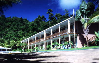 Great Barrier Reef zu Schnorcheln. Ein Motel ist auch schnell gefunden. Wir mieten uns 3 Tage bei Crocodile Dundee im "Island Inn Motel" für 45 A$ die Nacht ein. Seine Beschäftigung besteht aus Schlafen in einem dicken Ledersessel an der Rezeption und seiner zugelaufenen Siamkatze. Auch bei ihm kann man Touren buchen.