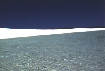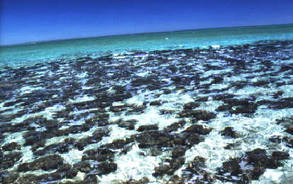 11. Tag: 14.03.01 Die Fahrt geht weiter Richtung "Shark Bay" (400 km). Der Sand wir immer roter je höher wir fahren. Wir stoppen bei den "Stromatoliten" am Hamilton Pool. Das sind große Mengen von Algenmassen die sich vor ca. 3 Milliarden Jahren gebildet haben und somit als die älteste Form von Leben auf der Erde gelten. Trotzdem sind sie nicht sehr spektakulär.....nett ist dafür die Telegraphenstation. Wir fahren weiter zum berühmten "Shell Beach", ein perfekt geformter Strand aus Milliarden von Muscheln und ganz seichtem Wasser. Wir sind dort mal wieder ganz alleine.