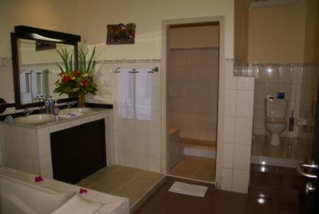 Die Anlage ist wunderschön, aber sehr klein. Man hat alles in 15 Minuten angeschaut. Es gibt um die 8 Gästezimmer die aber alle riiiiesig sind und mit einen tollen Balkon mit Liegen ausgestattet sind. Das Badezimmer ist eines der besten was wir je in unseren Urlaube hatten und hat 6 Sterne verdient !!! Es gibt sogar einen extra abgetrennten Duschraum.