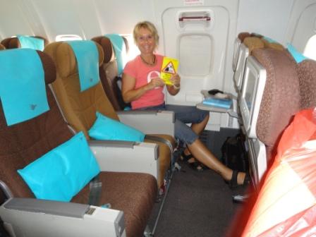 Im Flieger von KLM sind nicht alle Plätze besetzt und wir