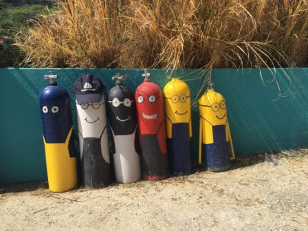 Minion-Sauerstoffflaschen, gesehen auf Curacao,