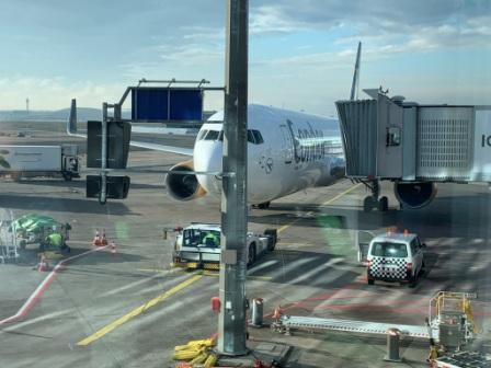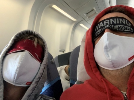 zeitverzögert. Im Flugzeug sitzen auch die anderen aus unserer Gruppe (noch