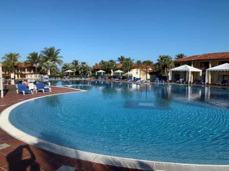 Abends gibt es hier sogar leckeres Spanferkel. Die Anlage ist sehr schön gestaltet. Kein riesiger Betonklotz. Er besteht aus vielen 2-stöckigen Gebäuden. Der Speisesaal ist aber richtig ungemütlich, wie eine Halle. Da sollten sich was verändern. Zum Glück hat man aber die Möglichkeit draußen zu sitzen. Und die Cocktails werden in Plastikbechern serviert....grrrrrr. Um einen besseren Standard zu bekommen hätte man 15 $ /Tag zusätzlich vor Ort zahlen müssen (UPGGRADE auf Premium All incl. = besseres Restaurant + Cocktails aus Gläsern...) Was soll das bitte ?!!!