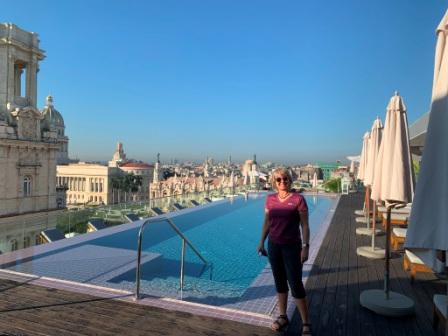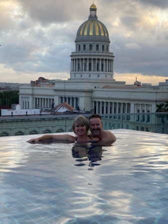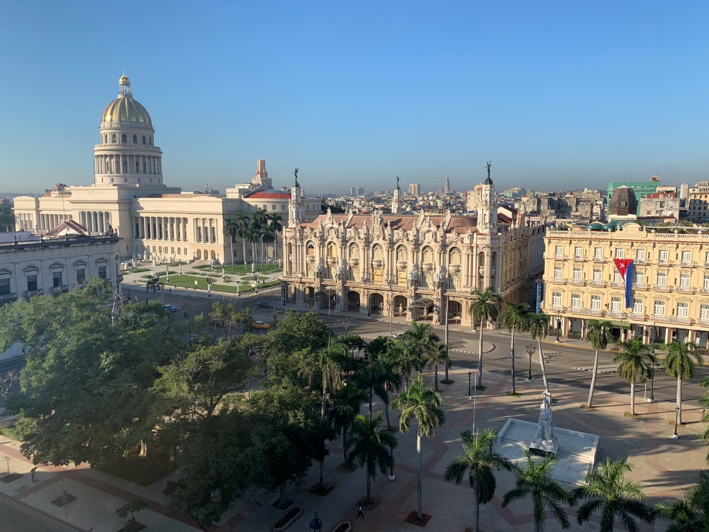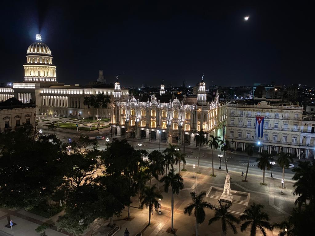 Das ist ein kostenloses Upgrade vom Veranstalter, da wir als 1. Reisegruppe nach der Öffnung für Touristen seit Mitte Oktober wieder auf Cuba aufschlagen. Die eigentlich angedachte Unterkunft durften wir nicht beziehen da die Regierung noch keine Gruppen in privaten Unterkünften in Havanna zugelassen hat.. Es sind nur wenige Hotels in Havanna offen, die Stadt ist leer. Man freut sich sehr auf uns. Hoffen wir das nach uns noch mehr Gruppen folgen können. Was für ein Ausblick von der Dachterrasse !!!!