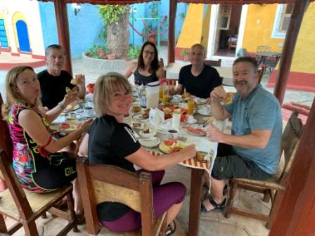 Den Rest des Tages verbringen wir am Beach. Am Abend bringt uns unser Bus wieder schnell nach Trinidad, wo wir uns dann zum Weihnachtsessen in der Casa Particulares, wo Yunior wohnt, treffen. die Gastmutter serviert ein tolles landestypisches Menü mit Fisch & Chicken. Als die ersten die Zigarren anzünden ist es Zeit zum weiterziehen. Wir landen zusammen in der "Fortuna Bar" von gestern. Der Barkeeper freut sich das wir wieder da sind und ein paar mehr Cocktails unter die Leute bringen kann. Wir trinken zum 1. Mal den landestypischen "Canchanchara" (einen leckeren Cocktail mit Rum, Honig und Limette) .