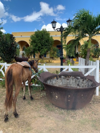 Das "Tal der Zuckermühlen" wurde als Weltkulturerbe aufgenommen und insgesamt 65 Bauwerke wurden unter Schutz gestellt. Wir besuchen "Manaca Iznaga", das gut erhaltene Kolonialhaus des Plantagenbesitzers und den danebenliegenden Turm "Torre de Iznaga". Von oben hat man eine schöne Rundumsicht. Dieser 45 hohe Turm diente damals zur Überwachung der Sklaven, wurde aber auch als Konkurrenzkampf zu einer Frau zu seinem Bruder gebaut.
