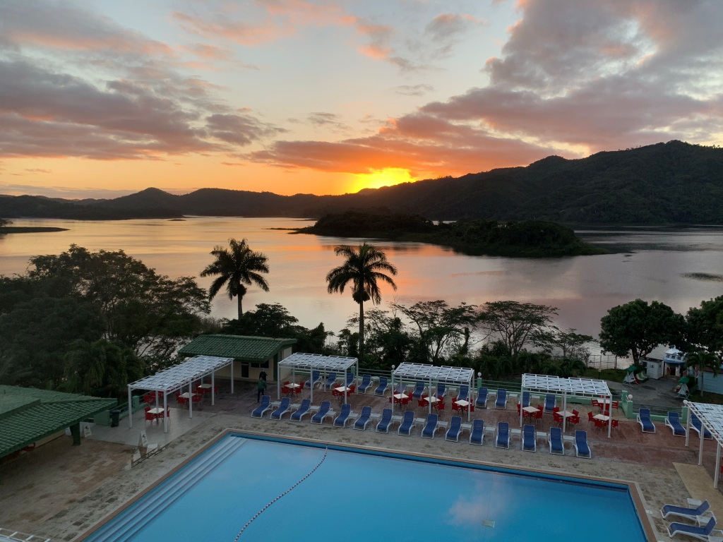 Zimmer haben Seeblick. Wir haben einen tollen Sonnenaufgang.