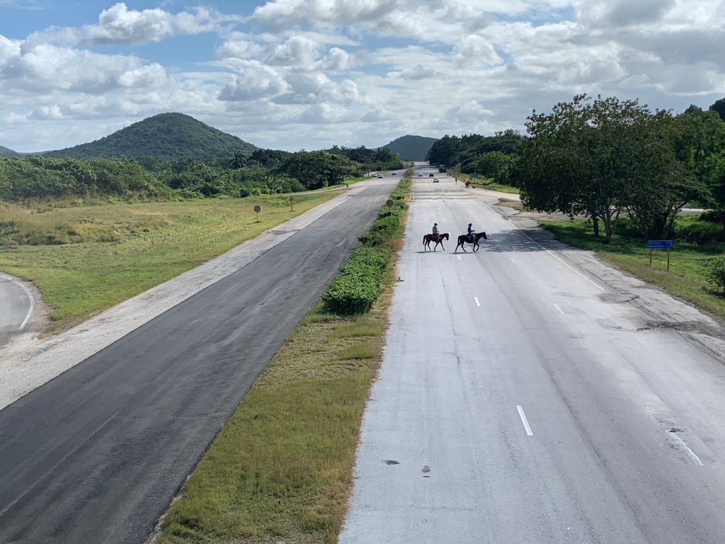 Eine kubanische Autobahn von oben. Hier fährt / reitet alles