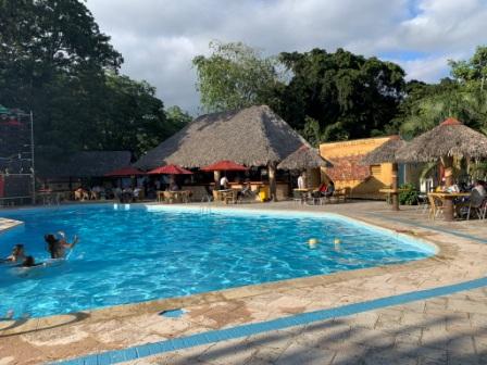 in den Begleitbus und kommen plitschnass im Hotel in Hanabanilla an. Das Thermometer