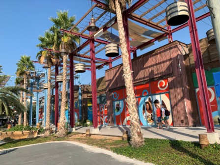 Es gibt sogar zwischen den beiden Stränden einen neuen Wasserpark mit Rutschen.