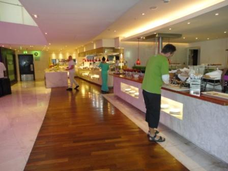 Da wir heute früh loswollen frühstücken wir wieder im Hotel. Der Frühstücksraum ist super stylisch eingerichtet und es gibt sehr viel Auswahl. Allerdings ist es mit 17 € pro Person eigentlich etwas teuer weil man das alles niiiiie abessen kann. Man kann auch nett im Außenbereich sitzen, aber da ist es jetzt um 8:00 h noch zu frisch.