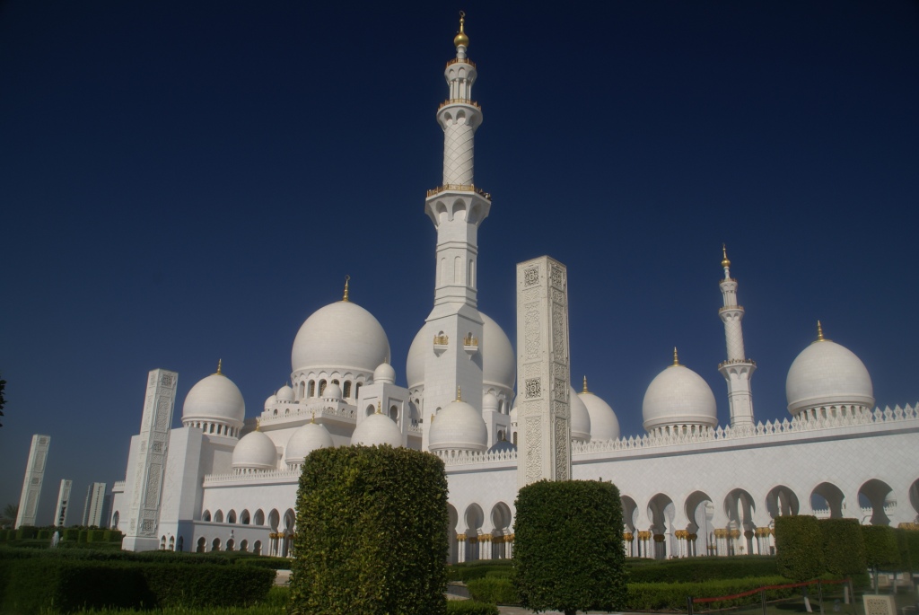 Voll gefuttert steigen wir in unseren Japan-Ferrari und los geht es die 80 km nach Abu Dhabi zur "Grand Moschee". Das ist das Wahrzeichen von Abu Dhabi und schon von weitem zu erkennen. Wir sind ja nicht so die Kulturbanausen, aber dieses Bauwerk ist schon echt beeindruckend.