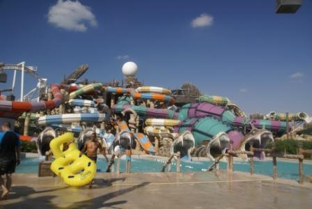 Es führt auch noch eine Achterbahn durch den Park die man auch mit Badezeug fahren kann. Eine witzige Idee.