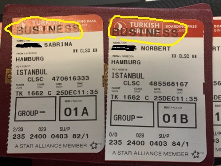 wir Glück und werden auf dem Weg von Hamburg nach Istanbul auf "Business"