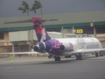 Nach einem kurzen Zwischenstopp steigen wir um in eine größere Maschine der Hawaiian