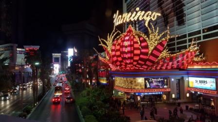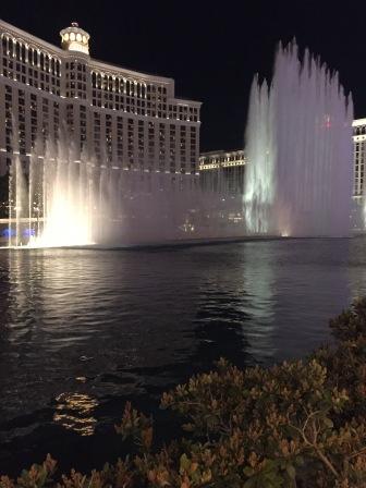 Bellagio-Hotel wo wir uns die Wasserfountain-Show ansehen. Das Lichtermeer am