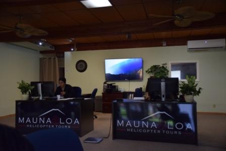 Wir haben schon vor 3 Monaten bei MAUNA LOA Helicopter Tours für 9:30 h den 1 stündigen Heliflug mit offenen Türen gebucht. Diese Uhrzeit ist immer sehr beliebt. Man liest im Internet das man den Flug am besten zwischen 9:30 h und 11:00 h wählen sollte da das Wetter ab Mittags oft umschwenkt und die Morgenstunden meist mit Sonne sind. Man zahlt dort auf der Website vorab mit Kreditkarte und kann bis zu 24 h vorher kostenlos und ohne Angabe von Gründen canceln. Auch ein Umbuchung auf einen anderen Tag ist möglich, kostet dann aber 100 $. Der Preis hat uns pro Person stolze 325 $ gekostet. Wieder einmal muss man sich im klaren sein das Hawaii wirklich kein billiges Reiseziel ist wenn man was Unvergessliches unternehmen will. Da man 45 Minuten vor Abflug im Office in der Habour Mall (dort ist deren Büro) sein sollte (Ausweis nicht vergessen) machen wir uns früh auf den Weg dorthin. Das Office liegt sehr unscheinbar in dieser kleinen Outdoor Mall. Hätten wir das nicht vorher genau gelesen wo das ist wären wir vorbei gefahren.
