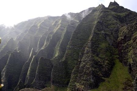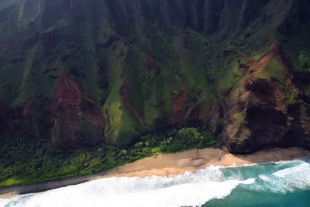 Leider ist mir mein Polfilter beim drehen aus dem Heli gefallen, aber die Bilder sind trotzdem Klasse geworden ! Das ist der Nachteil wenn man ohne Türen fliegt. Aber ein rieeeesen Vorteil ist das man keine Spiegelung hat und hautnah den Wind spürt. Ein unvergesslicher Flug. Natürlich fliegt sie auch die "Napali Coast" entlang. Eine einzigartige Landschaft !!! Wir sind erschlagen von der Schönheit und man vergisst einfach zu überlegen wie man diese Landschaft aufs Foto bekommt. Das passiert mir selten. Man genießt einfach nur und lässt die Kamera auf dem Schoß liegen. Deshalb hier im nachhinein leider nur ein paar Eindrücke die diesen Küstenabschnitt beiweiten nicht so toll darstellen wie er eigentlich ist.