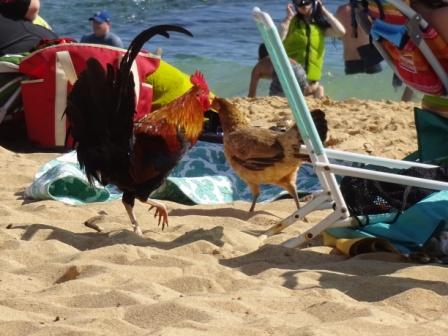 Man könnte Kauai auch Chicken Island nennen können. Sie tummeln sich hier sogar am Strand :-)