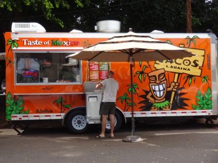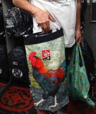 Abends schlendern wir wieder durch die Shops in Lahiana. Hier macht sogar das Hahn auf den Surfshorts nicht halt.