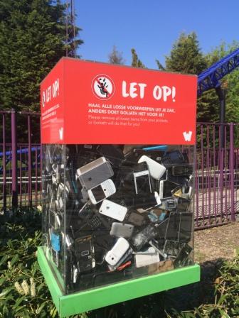 für verlorene Handys bei Achterbahnfahrt, gesehen im WALIBI Freizeitpark, Biddinghuizen,