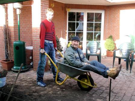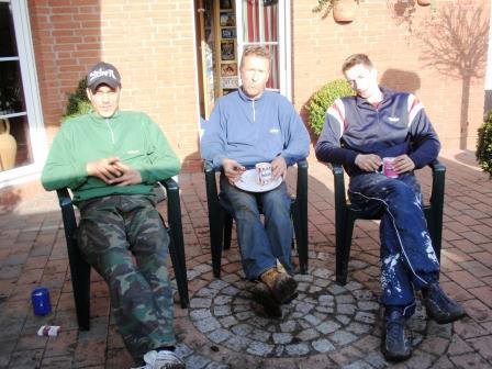 27.03.2009 Kaum kommt nur ein Hauch von Sonne und die Jungs schwingen den Spaten - RESPEKT ! Als ich von der Arbeit nach Hause komme staune ich nicht schlecht, der Container ist fast voll. Wer ist alles hier ?? Als ich auf die Terasse komme sitzen Norbert, Mr. Love und Matze gemütlich in der Sonne und trinken Kaffee. Wer hat das Loch ausgehoben ? Die 3 ???