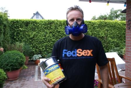 Atemschutz und eine Schutzbrille zu tragen da die Farbe extrem stinkt und die Dämpfe