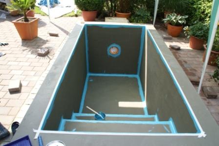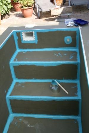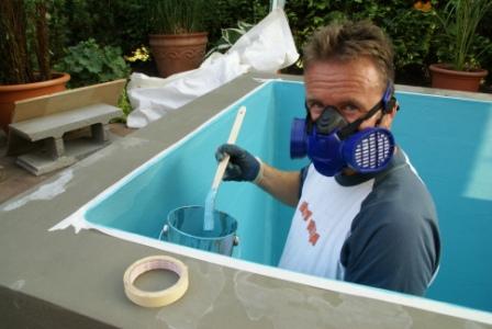 Anstrich mit verdünnter Schwimmbadfarbe (10 %) grundieren |