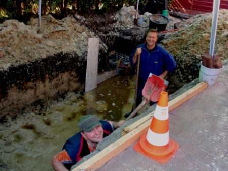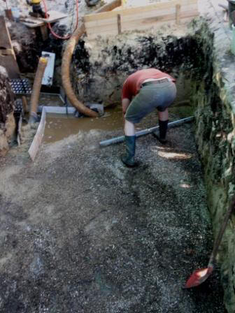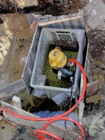 des anfallenden Wassers provisorisch in den Schacht und die Drainage wartet