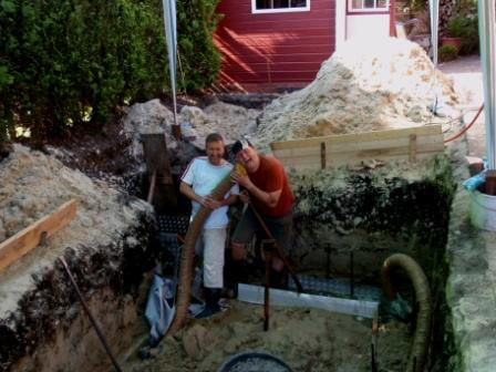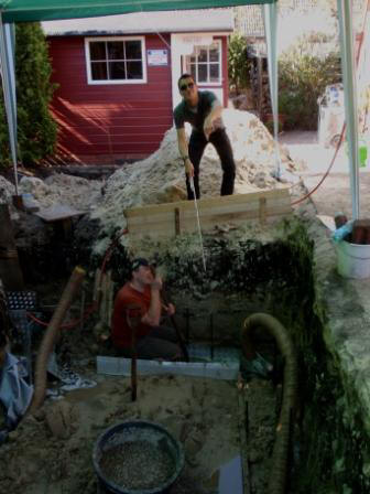 Sand aus der Grube geschafft. Nun sind wir bei 1,40 m Tiefe und die Pumpe