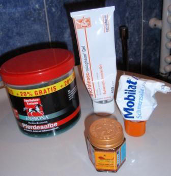 Pferdesalbe und Rheumatabletten gegen die Schmerzen der Buddelei von der Dame