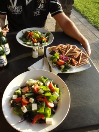 so oft. Endlich mal Greek Salat und Fladenbrot mit Dips auf der Karte. Das bestellen wir doch