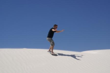 machen wir uns auf den Weg zum Lucky7-Supermarkt, wo man auch Sandboards leihen