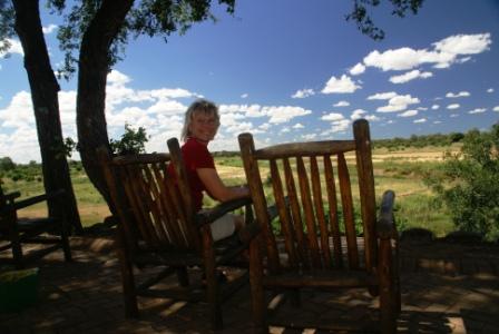 Dann fahren wir mit unserem 4 x 4 auch auf unbefestigte Wege, sehen aber danach nicht mehr viele Tiere. Deshalb stoppen wir am "Letaba Camp" und essen eine Kleinigkeit. Bei mir gibt es wieder "Greek Salat"... naja, heiß wie in Griechenland ist es heute wirklich. Vor dem Restaurant gibt es eine tolle Ausichtsterasse auf ein Wasserloch. Dort kann man herrlich relaxed sitzen und nur genießen. Dann machen wir uns auf den Rückweg, springen noch mal in den herrlichen Pool unserer Lodge. Toll ist auch die Deko, ein richtiger Elefantenschädel