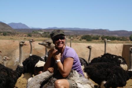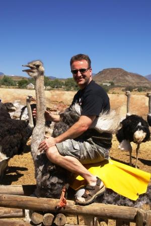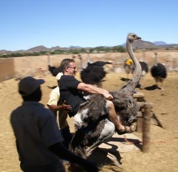 Also los. Norbert ist als erster dran. Irgendwie sehen die Vögel nicht so richtig reitbar aus. Der Guide erklärte wie man es macht, aber zwischen Theorie und Praxis liegen Welten ... aber lustig war es allemal !