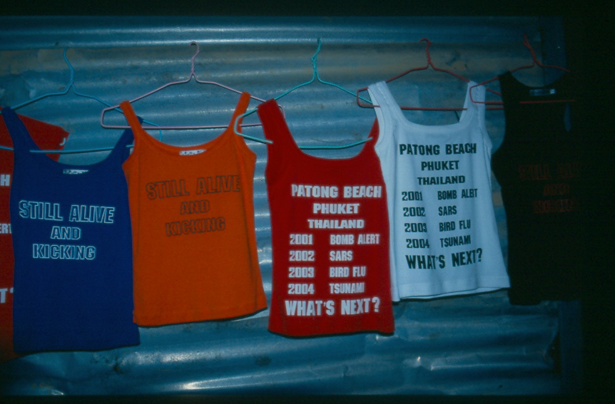 "Nai Harn Beach" "Kata Noi Beach" Alle schönen Strände liegen an der Westküste. Die Ostküste ist nicht zum Baden geeignet. Abends sind wir durch Patong gebummelt und haben doch ganz gut gestaunt was es hier so für krasse T-Shirts zu kaufen gibt: