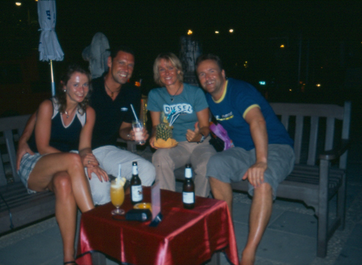 Abends sind wir dann mit dem Taxi nach Patong rein gefahren um uns mit Norbert & Nadja zu treffen. Die beiden hatten sich ganz spontan entschlossen nach Thailand zu fliegen, wohnten allerdings sehr nördlich im "Pearl Village", sodass die Mitte Patong war. Aber egal. Das Nachtleben ist dort auch einfach am besten. An dem Abend war es so irre heiß das die Männer schon vor dem Essen ein paar Bier zur Abkühlung trinken mussten und schon recht lustig waren. Wir Mädels schwitzten aber auch nicht schlecht...