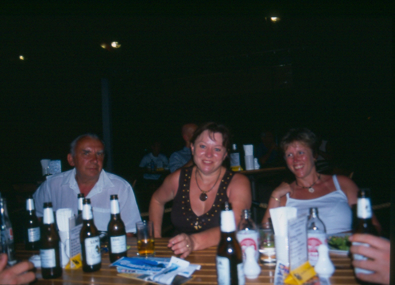 Abends in Chaweng ersteht Norbert in einem Shop wieder mal ein T-Shirt für seine Sammlung ;-) Dann hatten wir eine feuchtfröhliche Nacht mit netten Menschen aus dem Fernwehforum. Leider ist das Pärchen, welches das Treffen organisiert hatte, nicht aufgetaucht... Es wurden ein paar mehr Singha´s vernichtet... im Hintergrund spielte ein Double von Robbie Williams live. Das hörte sich zum Schluss gar nicht sooo schlecht an... lag aber wohl am Pegel den wir alle hatten.