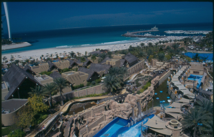 Danach hatten wir uns das "Jumeira Beach Hotel" angeschaut das wie eine Welle gebaut wurde. Eine architektonische Meisterleistung. Die Übernachtungen dort sind aber genausowenig für "Normalos" wie wir, bezahlbar. Der dazugehörige Wasserpark "Wild Wadi" (was für ein bekloppter Name) sieht aber einladend aus. Deshalb haben wir uns spontan entschlossen den restlichen Tag dort zu verbringen. Wir lieben ja Freizeit- und Wasserparks und hier waren wir wieder in unserem Element. Der Eintritt war recht happig (ca. 35 € p.P.). Aber es lohnt sich. Mein Kollege hatte mir mal davon vorgeschwärmt. Danke Hauke für den Tipp !! Hier mal ein paar Bilder: