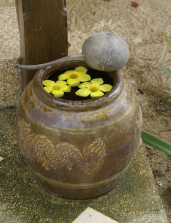 Die Anlage haben wir günstig für 60 € über NECKERMANN gebucht. Für einen Strandbungi incl. Frühstück wirklich ein sehr guter Preis. Die Anlage ist sowas von schöööön !!!! Hübsch war auch der liebevoll mit Blumen gefüllte Wasserkrug neben der Treppe. Besser noch der Ausblick:
