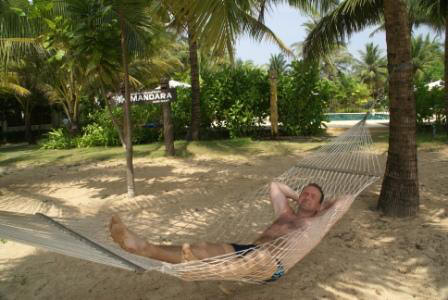 Die Überfahrt dauerte nur 10 Minuten. drüben stand ein Pick-up Taxi was wir anheuerten und was uns in weiteren 10 Minuten bis zum vorgebuchten "Amandara Island Resort" brachte. Wir wurden sehr herzlich empfangen und konnten gleich unseren Bungi beziehen.