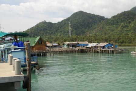 26.02.2008 KOH CHANG (Fortsetzung) Ich wollte es ja dem Besitzer abschnacken aber der ließ sich nicht weich klopfen. Nun müssen wir mit dem Holzauto nach Hause fahren... Weiter ging es nun ganz nach Süden nach Bang Bao, zum Fishing Village, welches komplett auf Pfählen gebaut wurde. Hier gibt es jede Menge Restaurants und Shops wo man sehr viele Souvenirs angeboten bekommt. Hier starten auch viele Ausflüge zu andere Inseln.