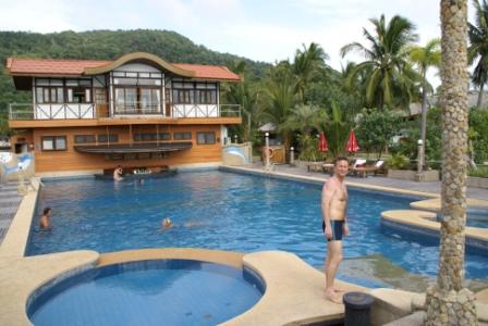 Weiter ging vorbei am Bang Bao Beach zum "Koh Chang Grand Lagoona Resort", welches sehr abgeschieden im Süden der Insel liegt. Am Eingang der Anlage bekommt man für 100 THB p.Pers. einen Besucherschein. Damit kann man die Fahrräder der Anlage, den Strand und den Pool + Handtücher kostenlos benutzen. Außerdem bekommt man 1 Getränk und Obst umsonst. Das ist ein fairer Preis. Die Besichtigung der Anlage lohnt sich.