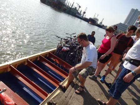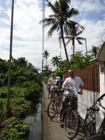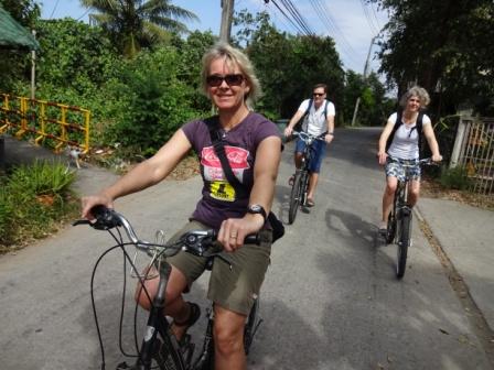 24.12.2016 - Radtour in Bangkok An Weihnachten wollten wir mal was Außergewöhnliches machen. Deshalb haben wir uns von Zuhause aus eine Tour bei www.bangkokbiking.com gebucht. Die Tour startet schon um 8:00 h Morgens. Das ist auch gut so, denn es wird schnell sehr heiß. Mit uns fährt ein nettes Pärchen aus München und eine Mutter mit 2 Teenagern. Also eine gemischte, kleine Gruppe. Unser Guide ist auch sehr gut drauf. Die Fahrräder haben allerdings schon bessere Zeiten gesehen. Aber egal... die Tour ist cool und macht viel Spaß. Wir sehen so mal ganz andere Ecken von Bangkok. Besonders gut gefallen hat uns die "grüne Lunge" auf der anderen Seite. Dort tanken die Thais selbst auch gerne am WE ihre "Akkus" auf. Die Überfahrt ist auch abenteuerlich. Von der anderen Seite hat man eine schöne Aussicht auf die Stadt. Die Tour hat umgerechnet ca. 30 € pro Person gekostet, incl. Essen. Das ist fair.