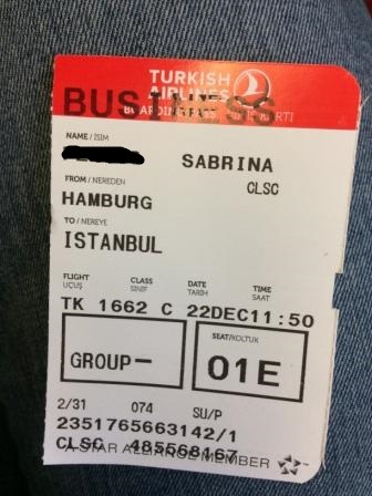 wir dürfen upgegradet in der Businessclass nach Istanbul fliegen. Wie geil ist das denn
