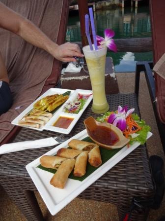 paar leckere Frühlingslollen, Chicken-Satee und Pineapple-Shake.... Urlaub...