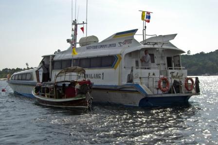28.02.2007 KOH LIPE => LANGKAWI (Malaysia) Heute früh um 9:00 Uhr ging unsere Fähre (über Satun) nach Langkawi. Wir frühstückten in Ruhe, verabschiedeten uns von den anderen die weiter über Koh Lanta nach Phi Phi wollten. Wir blickten ein letztes Mail hinunter und gingen dann zum Strand um mit dem Longtail des Resorts an den Pattaya Beach gefahren zu werden von wo aus die Fähre startete. Koh Lipe hat uns gut gefallen. Wir kommen sicher bald mal wieder !!