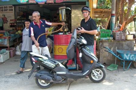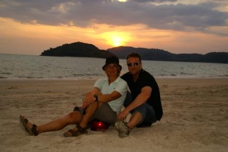 Also mieteten wir uns schnell einen Roller und hielten erstmal bei KFC an um uns einen schönen Chickenburger zu gönnen. Leider ist KFC hier nicht so vielfältig wie in der USA. Dann fuhren wir weiter Richtung Norden bis zu dem "Berjaya Beach Resort". Und das was wir sahen war echt enttäuschend. Die Anlage selbst war eigentlich ganz nett und sehr weitläufig. Es gab auch Bungis auf Stelzen die im Wasser stehen. Das Resort liegt aber echt richtig ab vom "Schuss". Und der Strand dort.... dunkelgelb... das Wasser... Nordsee... gar nicht klar... nöööö, das war`s... und weg ! 2 Wochen Urlaub hier - nein Danke ! Das stelle ich mir nicht unter Malaysias Traumstränden vor... Wir fuhren danach noch zum Pantai Cenang Beach. Der war ziemlich vermüllt. Allerdings gab es einen netten Sonnenuntergang und wir unterhielten uns noch mit jemanden der hier zur Tagung war. Das war natürlich ganz passabel. Danach gingen wir noch was Essen und suchten eigentlich noch eine Massage. Aber die waren hier wesentlich teurer als in Thailand, leider.