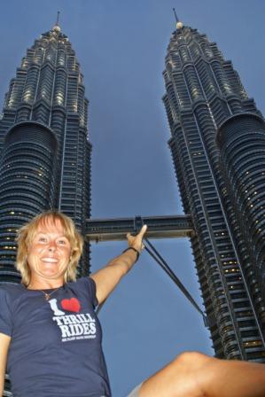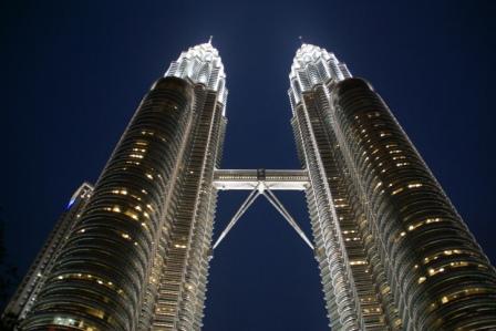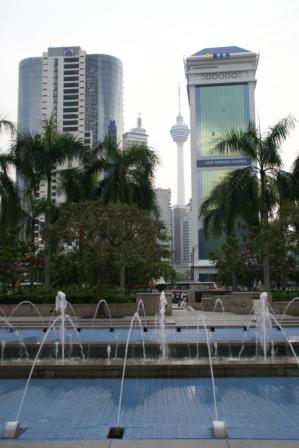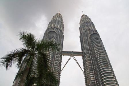 Wir machten uns erstmal frisch und gingen dann zu den Petronas Twin Towers um sie im der Dämmerung bis zur Dunkelheit zu erleben. Unten in den Towers ist auch ein exklusives Shoppingcenter (Suria KLCC). Die Höhe der Towers (452 m !!!) ist super beeindruckend. Sie waren bis vor einiger Zeit das höchste Gebäude der Welt. Sie sind wirklich sehenswert und man muss sie auf sich wirklich auf sich wirken lassen. Wir würden jedem einen Stopover in dieser Stadt empfehlen. Leider hatten wir heute kein Autan eingesteckt. Die Mücken hatten uns in der Dämmerung zerbissen. Die Tower sind im 41. und 42. Stock mit einer Brücke miteinander verbunden. Hier mal ein paar pictures: