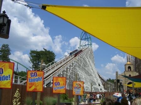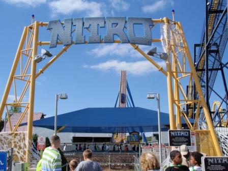 Es sind nur ca. 15 Miles Fahrt dorthin. Da der Park erst um 10:30 h öffnet stehen wir schon mit vielen anderen Freaks vor den Toren und hören uns die Nationalhymne an. Danach gibt es noch ein paar Lieder zum "warmtanzen" (was doch einige Kids in einer guten Choreographie hinbekamen und dann heißt es: Tore auf !!  Die Amis lieben ihre Freizeitparks und viele sind Rollercoasterfans.
